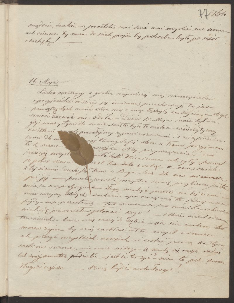 Dziennik Emilii Beniowskiej (Wróblewskiej) 1850‒1855, Wilno, 16 maja 1854 r., k. 77r.